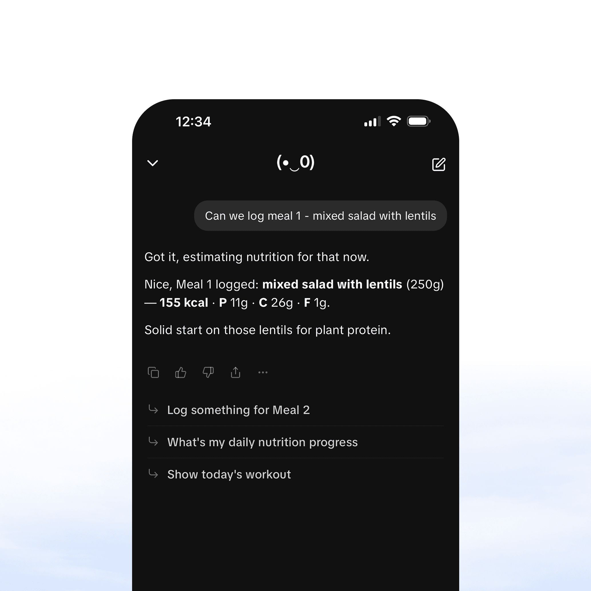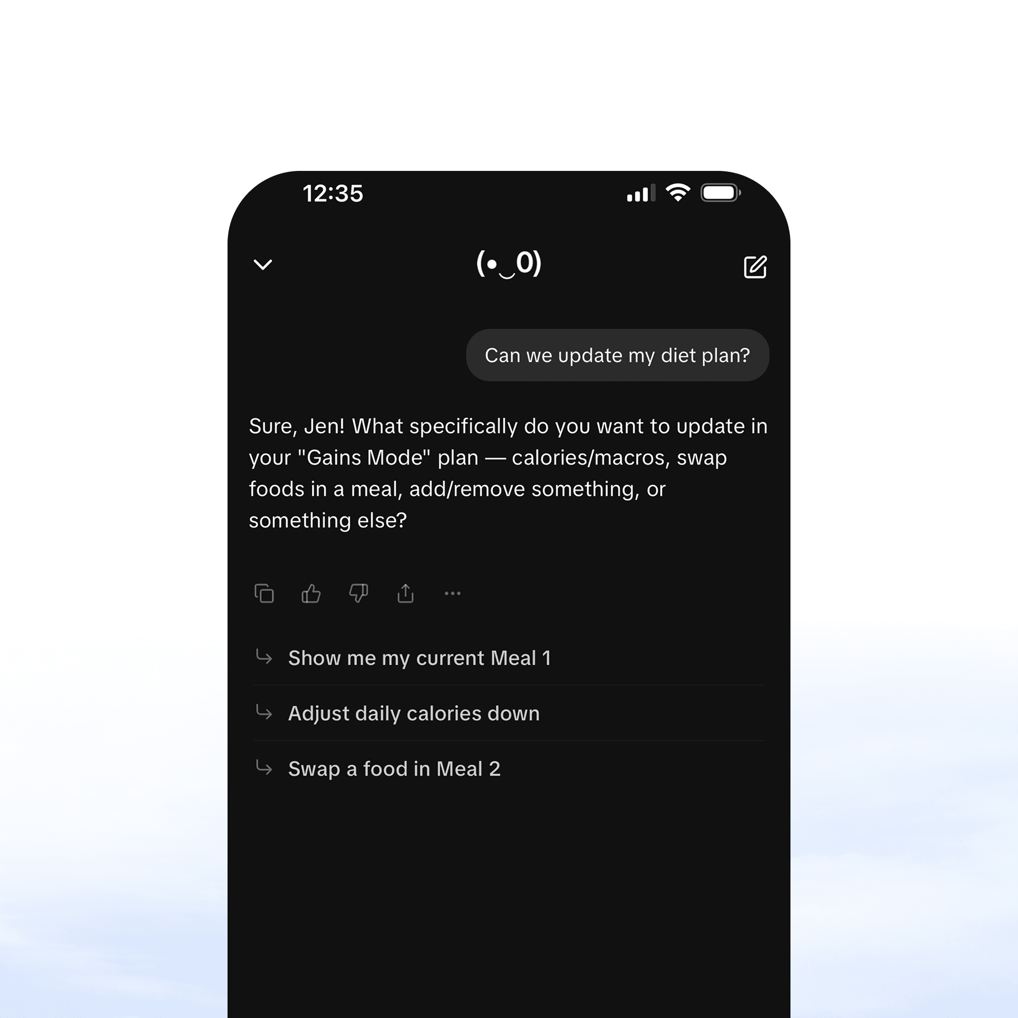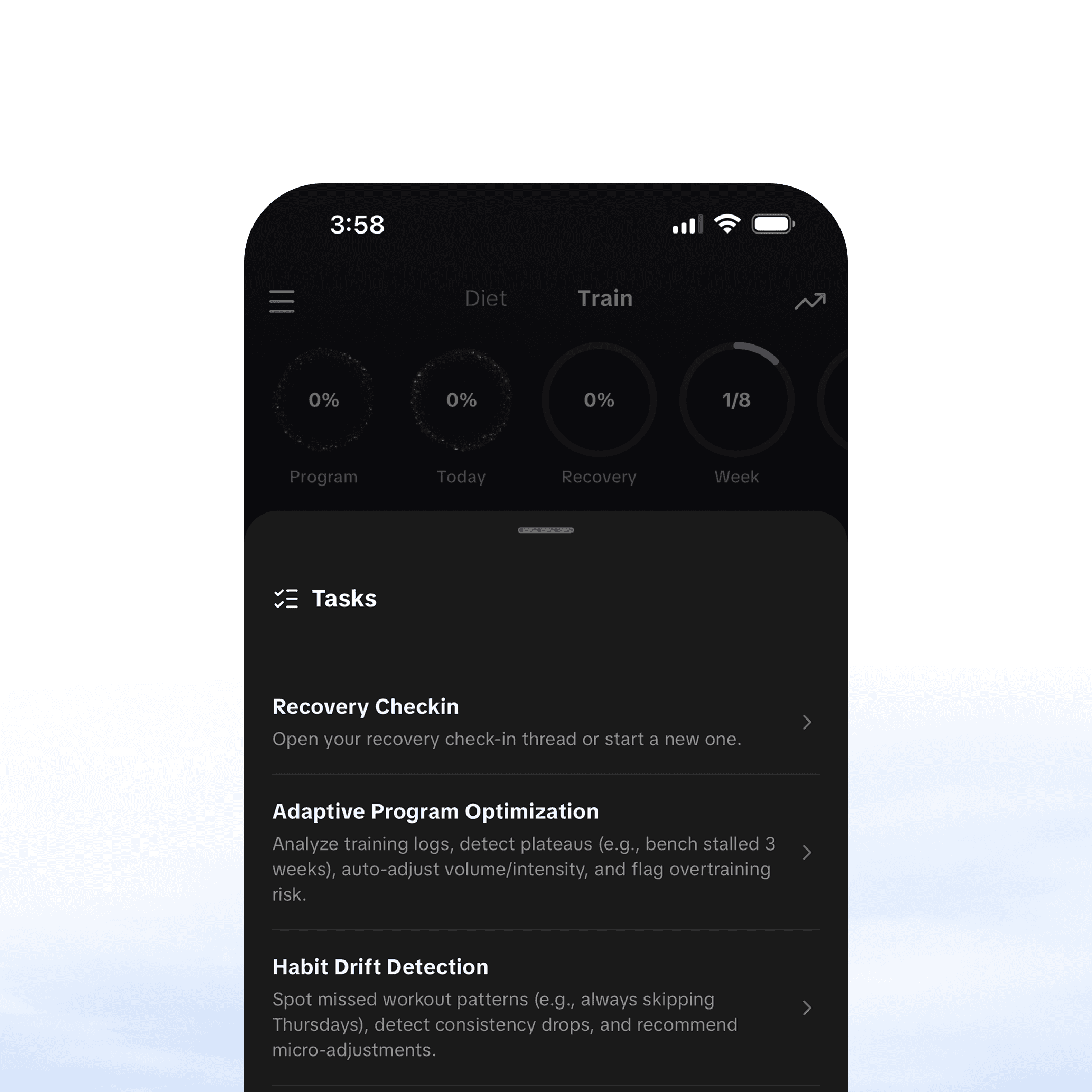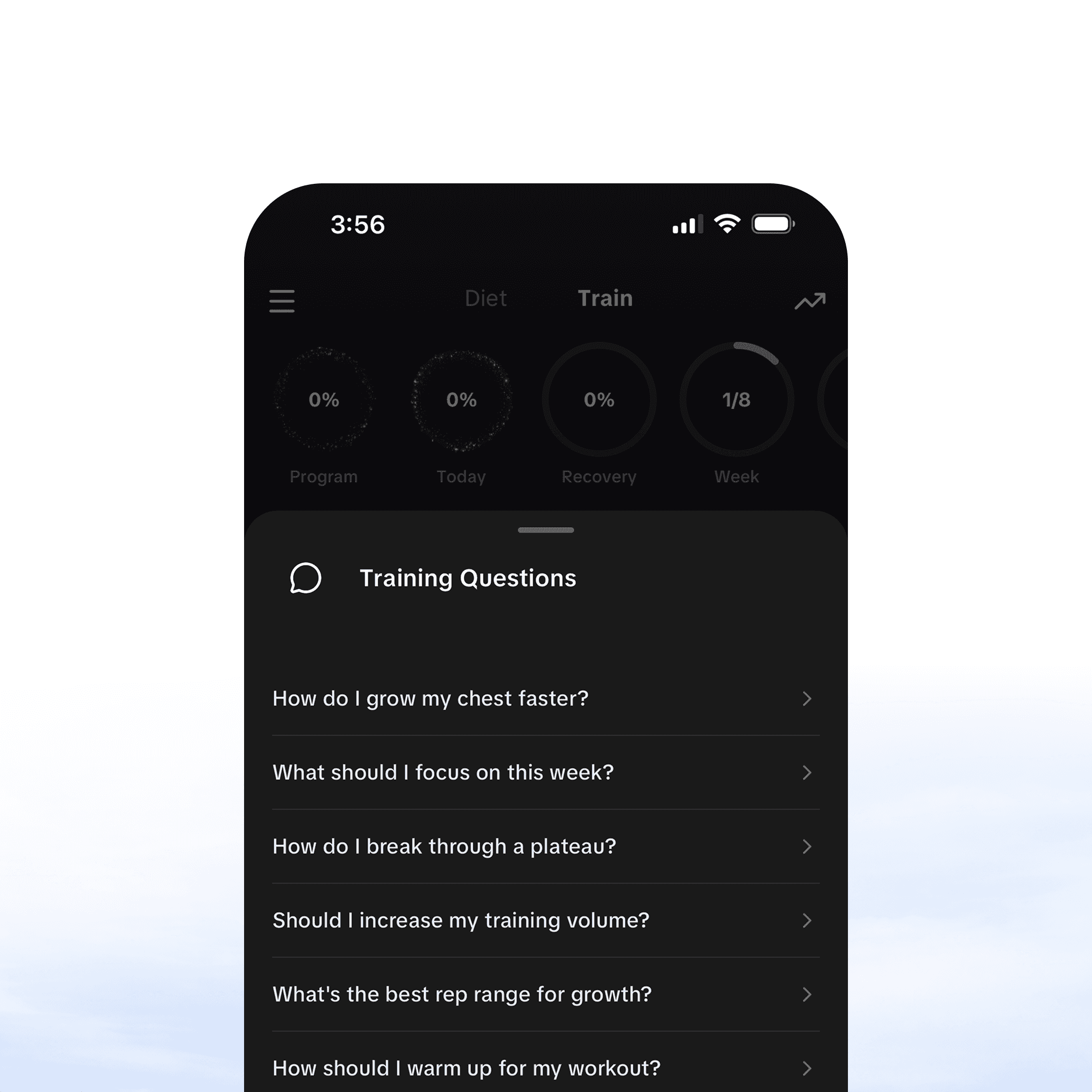 Your AI agent has complete memory of your diet plans, training programs and progress. Ask any question you need answered.