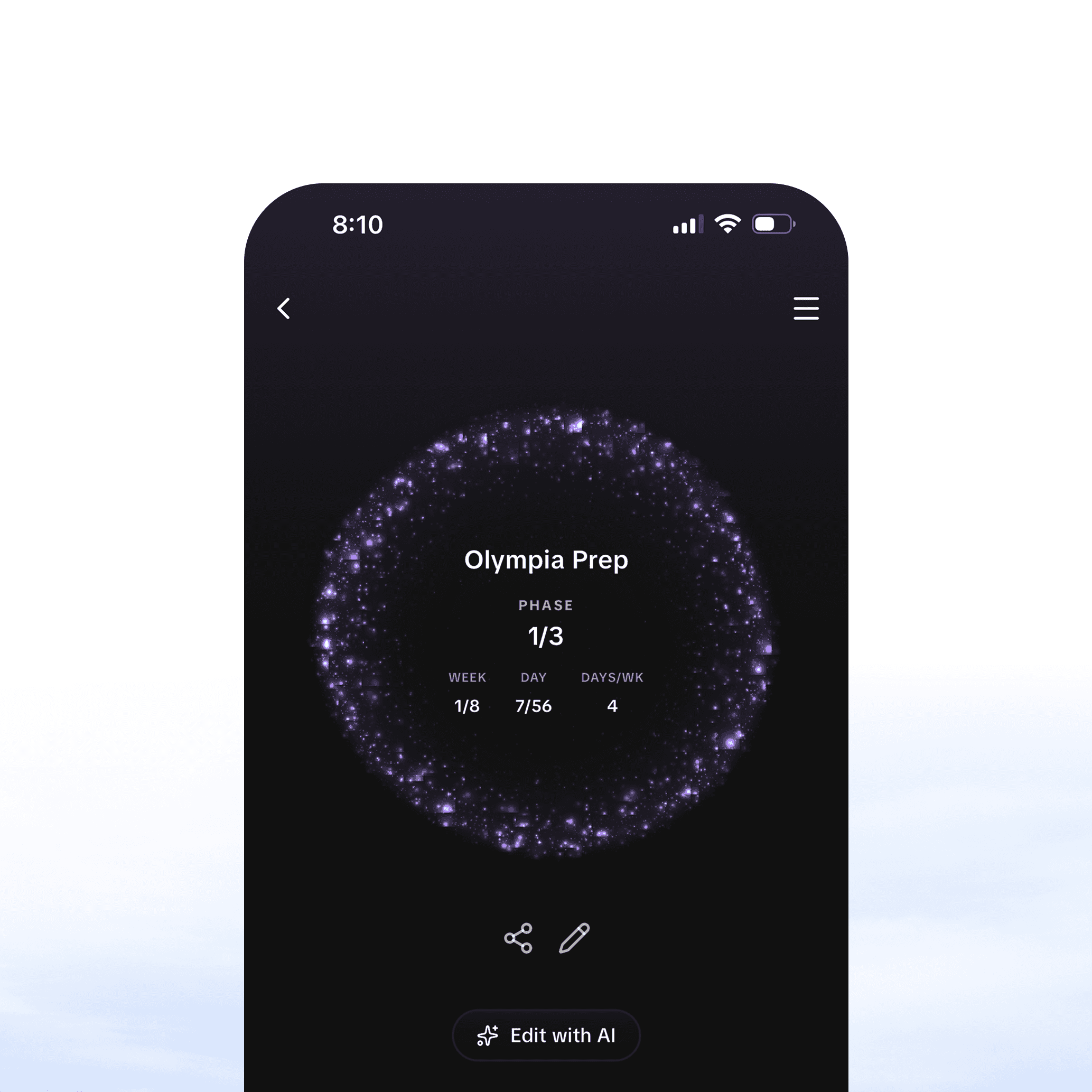 Create diet plans that adapt to you, complete with phases. Get insights and edit on the fly with AI.